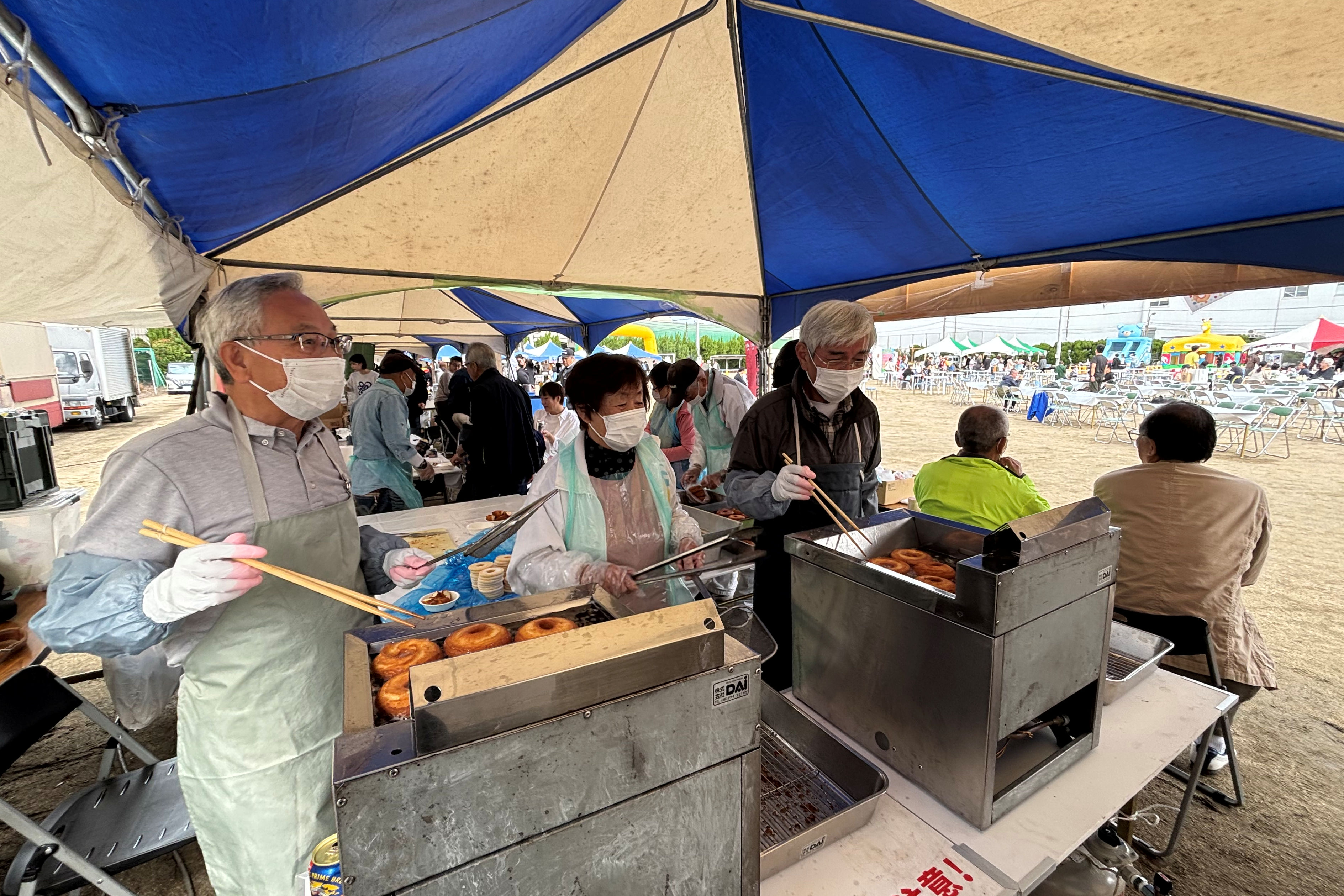休憩を入れたり、野球帽へ陽射し避け布(紫外線避け)をつけて体力維持に努めており