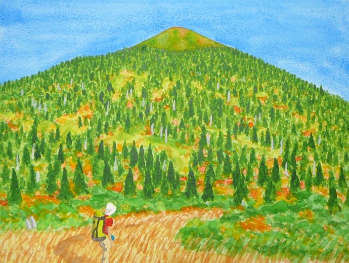 で、この絵は、山頂から下って、鞍部で振り返ったところなんですが…