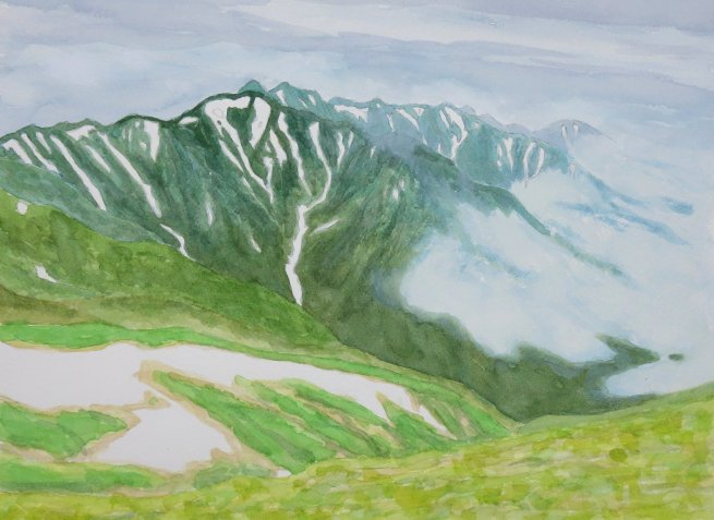 明日からの天候が心配になりながら、その東北の山らしい遥かなる山稜を眺めていたら、