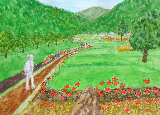 この季節になると、決まって歩きたくなる丹沢山麓の里山で、稲刈の終わった畑の畔や、 小草地に咲いている彼岸花が、心をなごませてくれます。さらに近くには、 日向薬師、さらに日帰り温泉などもあって、初秋の柔らかな日差し を浴びながら、のんびり季節の移ろいを楽しめます。