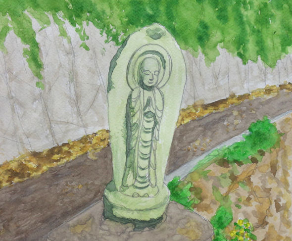 利用する人がいるのだろうか?…と思えるほどローカルなバス停の脇に、 道路側に面して、この石像が立っていたのです。石仏の周囲を、 よく見てみたんですが…文字らしきものは、 何も彫り込まれていません?? だれが、何のために、ここに、この石仏を???