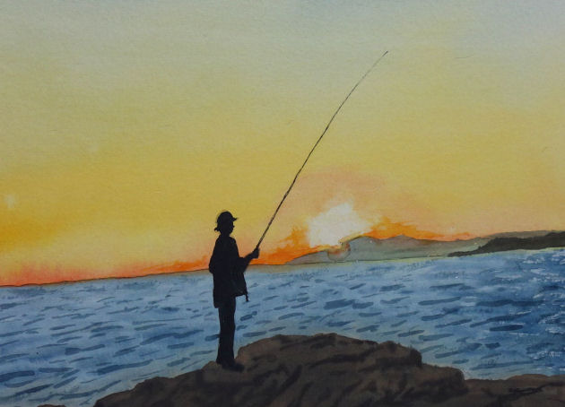 望める磯で、夕方、陽が落ちるまで竿を出していたん
