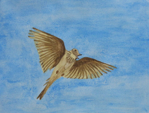 山麓へ向けて田舎道を歩いていると、突然、空の何処かから 「ピヨ、ピヨ、ピヨ…ピヨ、ピヨ、ピヨ…」という鳴き声が! 見上げると、何十年ぶりかで見る、ヒバリでした。 昔か~し、高校生の頃、学校裏の草原で、 春になるとヒバリの声を聞いたな~ と、懐かしい思い出が蘇りました。