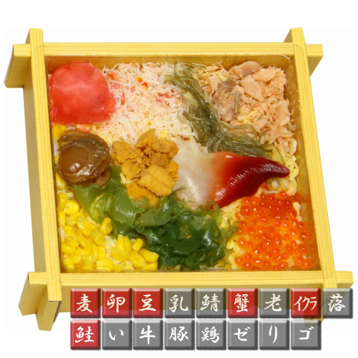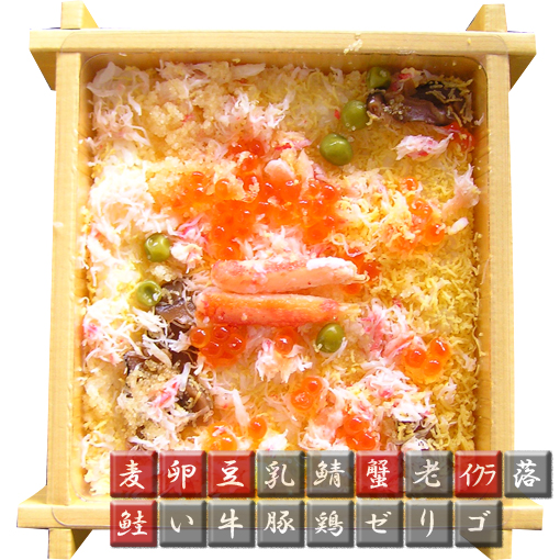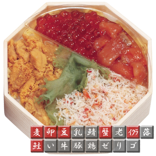 【北海海鮮ちらし】 北の幸満載。蒸しウニ、北寄貝、ズワイガニ、帆立、北海道産鮭といくらを使用した彩り豊かなお弁当です。 |