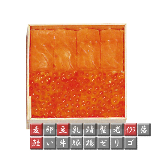 【鮭いくら】 北海道産の天然秋乃鮭を一枚ずつこんがり丁寧に焼き、特製醤油に漬けた自慢のいくらをたっぷり盛り付けた鮭の親子弁当です。人気です。 |