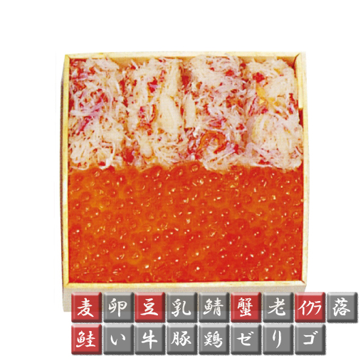 【いくら石狩鮨】 新鮮なずわいがにのむき身、北海道産の秋鮭、佐藤水産自慢の新鮮な甘口いくらを詰め合わせた人気の鮨弁当です。お土産にも人気です。 |